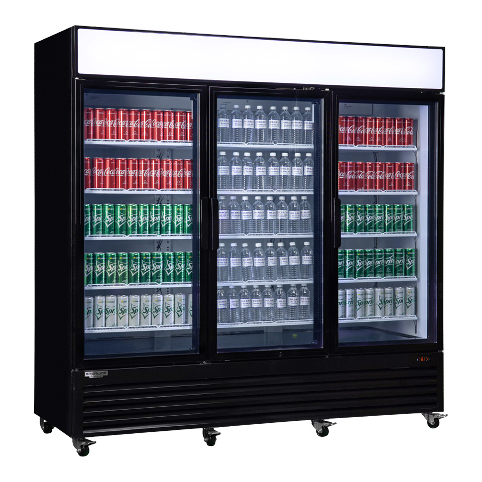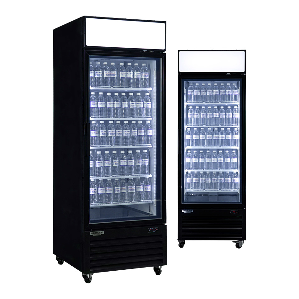 Black Swing Glass Door Merchandiser Refrigerator with LED Lighting