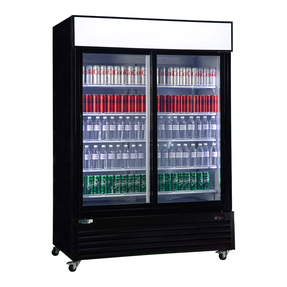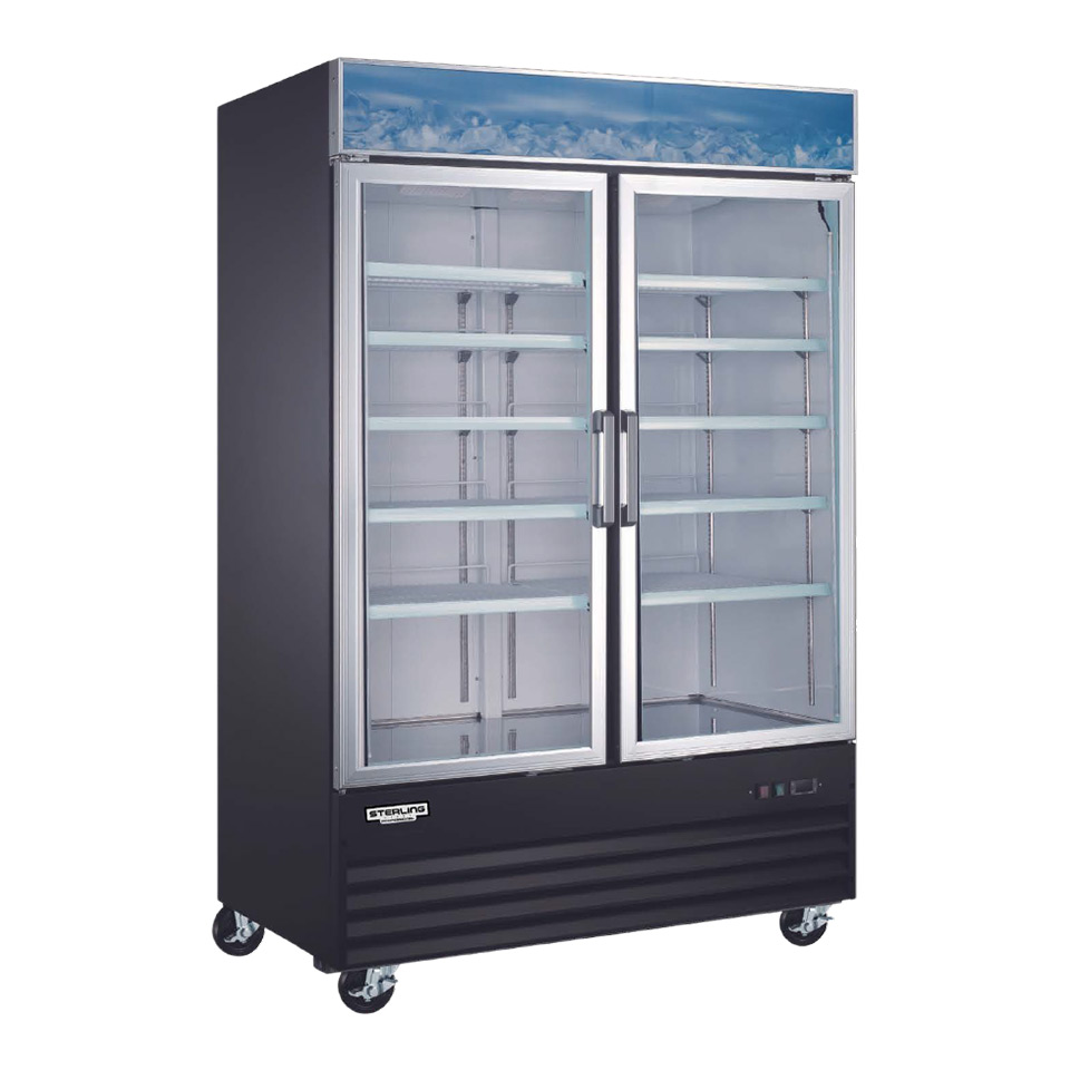 Black Swing Glass Door Merchandiser Refrigerator with Black Interior & LED Lightling