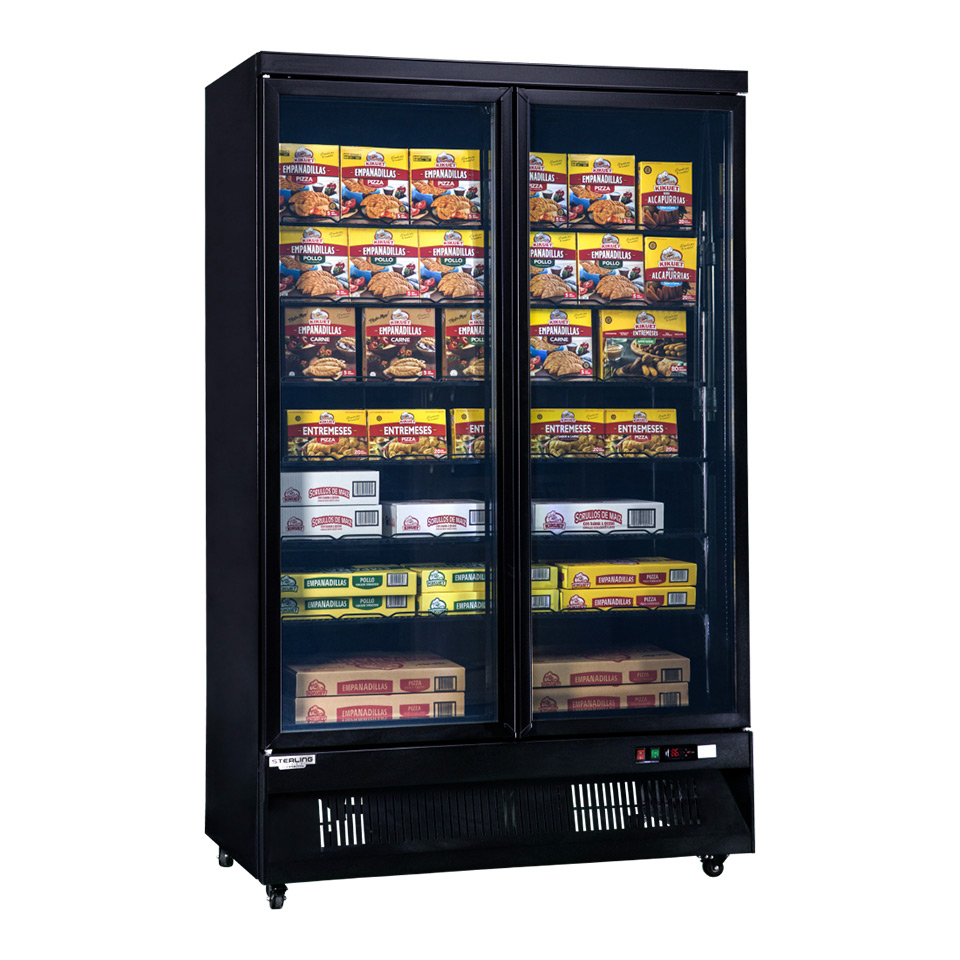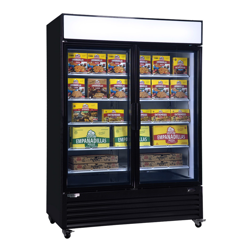 Black Swing Glass Door Merchandiser Freezer with Black Interior & LED Lighting